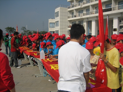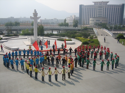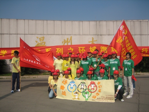 10月27日上午9:30—11:00,由400全讯白菜网、数学与信息科学学院、美术与艺术设计学院和机电工程学院主办的“迎奥运,环城跑”青年志愿者活动在温大生活区A区隆重举行。青年志愿者们穿着鲜艳的奥运五环五色衣服,挥舞双臂,迈出步伐,一个个容光焕发。他们手拉手,心连心,先是在A区整齐地摆出了五环的形状。之后,志愿者们进行了环城跑,一起在大学城中传递微笑,传递奥运精神!“迎奥运,我们在行动”的口号不时在校园内回荡,围观的学生也不断融入了奥运的氛围。