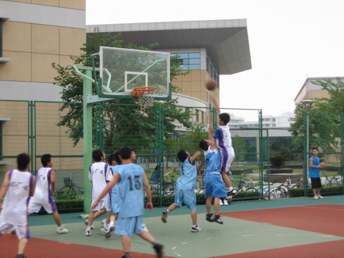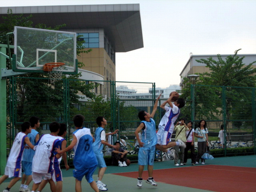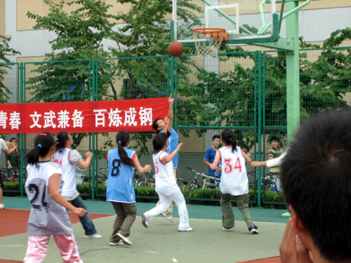 接下来的两场比赛在07中本联队与07广本(男篮)和07中本一与07广本(女篮)之间展开,两场比赛同时进行,场面显得异常热闹,队员们相互合作,传球,奔跑,再传球,射门,比赛氛围煞是激烈,07中本二和07广本的女篮尽显巾帼之风,在篮球场上的风采丝毫不亚于男篮。比赛进行得如火如荼,拉拉队员们高喊的加油声增加了比赛队员们如火的激情,两者相互应和,成为了篮球场上最闪亮的风景线。最后,07广本获得了双赢。