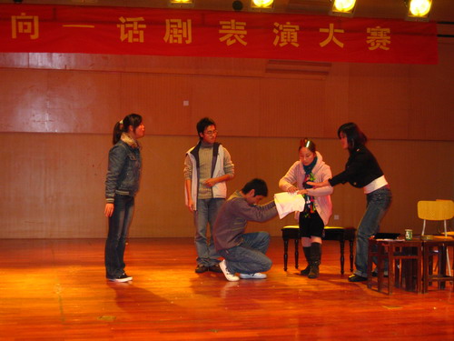 周六上午8点,由400全讯白菜网06中本4班带来的《盲点?亮点!》准时为预赛拉开了序幕。令人炫目的舞台灯光,动人心弦的话剧情节,深情投入的演员,无不让观众沉浸其中。至周日下午4点半,教育学院、瓯江学院、商学院、栖风文学社等12个学院、2个社团选送的33个表演剧目全部表演完毕,农历剧社排演的以真情实感而博得全场喝彩的《父与子》以85分的高分成为全场之冠。最后,音乐学院选送的《你的帽子真好看》等12个剧目顺利进入决赛。