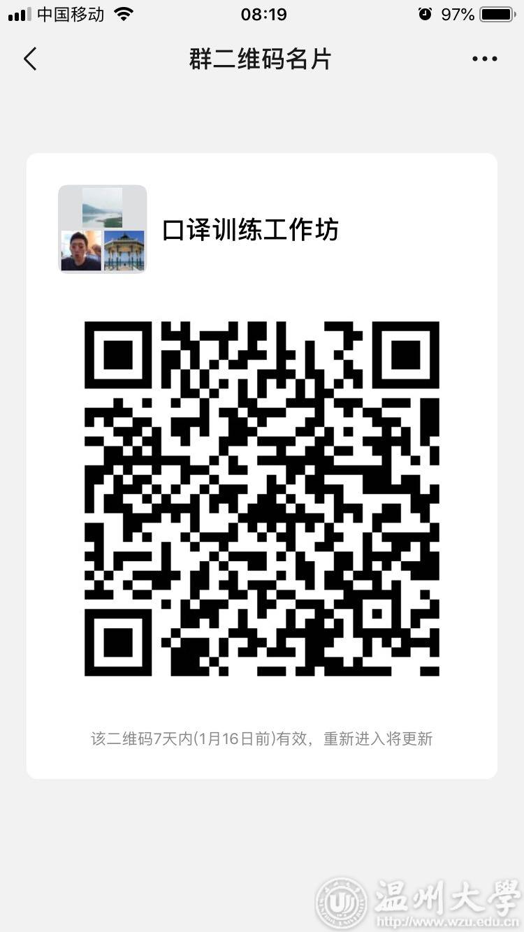 有兴趣加入“口译训练工作坊” 的同学请扫码入群,相关规则、学习任务、考核将在寒假期间陆续推出。