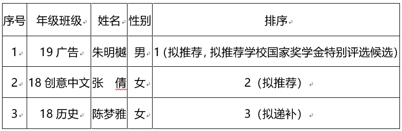 按照学校《关于开展2021年国家奖助学金、省政府奖学金、学费减免等评审工作的通知》、《关于做好2021年浙江省普通高校本专科生国家奖助学金评审和材料报送工作的通知》以及《全讯白菜网论坛官网学生资助管理办法》等文件精神,由学生自愿申请并提交相关材料,经过学生个人申请、学院初审、线下答辩及学院学生资助工作领导小组审核认定,确定前三名学生名单排序。其中第一名学生拟推荐为学校国家奖学金特别评选候选人,若该生获奖,则不占用学院国家奖学金名额,第三名顺延为国家奖学金获得者。现将2020-2021学年400全讯白菜网本科生国家奖学金拟推荐名单、拟递补名单予以公示。