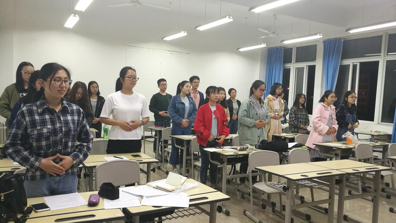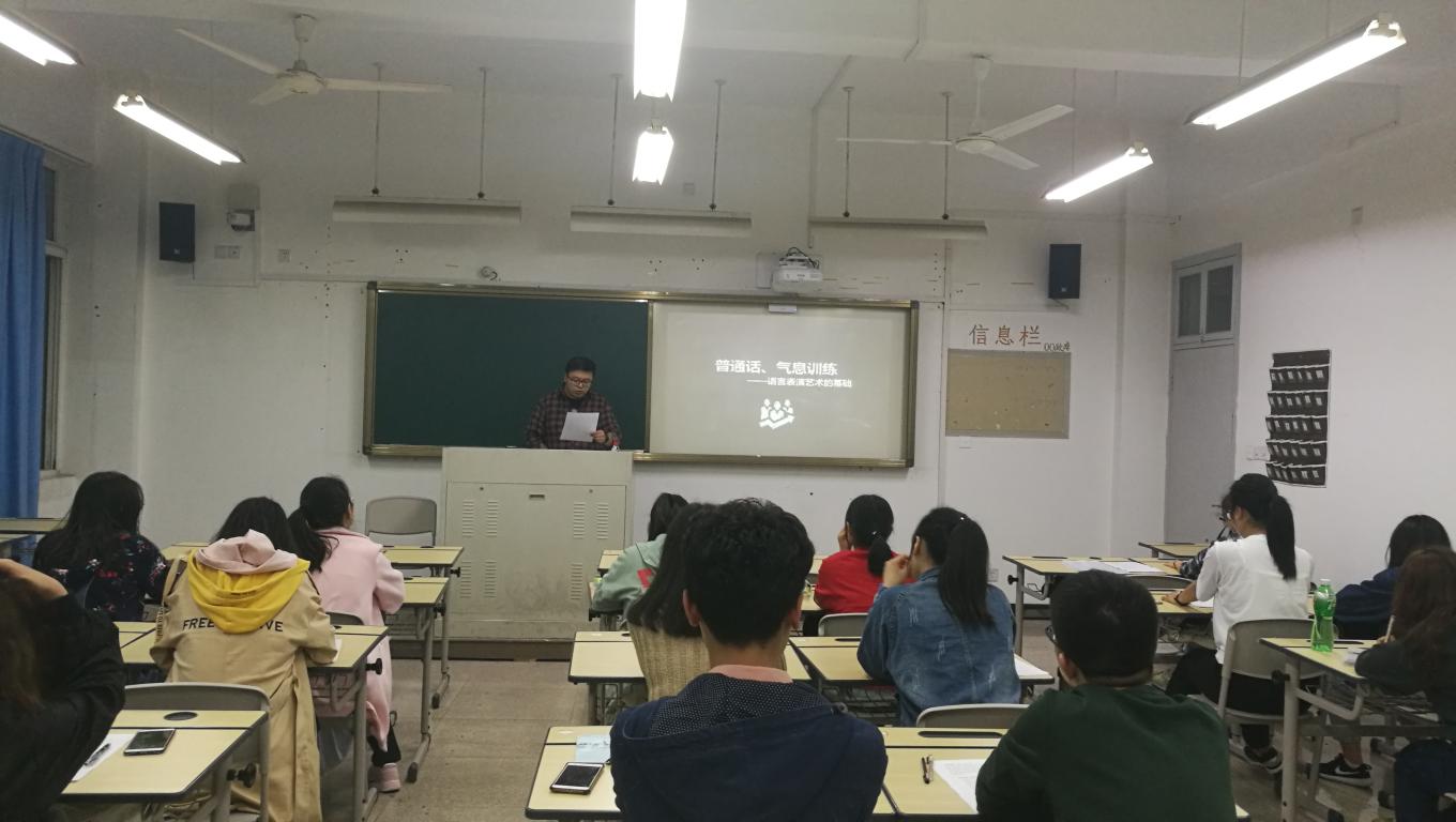 2018年4月1日19时整,由400全讯白菜网主办的中英诗朗诵培训班于人文楼410教室开班。本次课程由胡震鹏老师主讲,素拓培训班的全体成员到场听课。