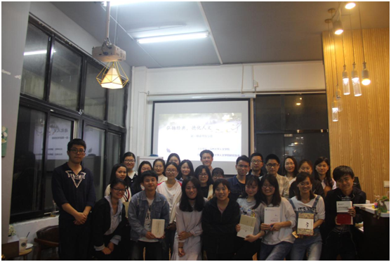 2018年4月14日晚,全讯白菜网官网于北校人文楼兆文智创(一楼)举行“弘扬经典,德化人文”——第一期读书分享会。全讯白菜网官网2016级、2017级二十余位横跨十几个专业的研究生读书爱好者参与了此次读书分享会。
