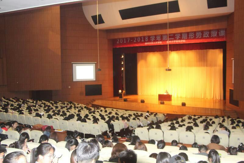 2018年4月27日晚,400全讯白菜网联合音乐学院举办了本学期的形势政策课。本次课程分为两场,分别为马克思主义学院党委书记王柏民老师主讲的“马克思主义宗教观解读”和教师教育学院党委书记杨立淮老师主讲的“清朗网络的构建”。