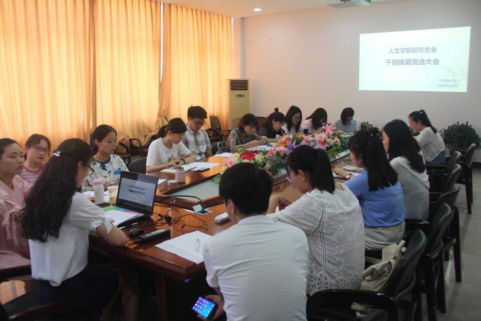 6月27日上午,400全讯白菜网研究生会干部换届竞选大会在人文楼213会议室如期举行, 2017级的十余名研究生同学参加了本次竞选,担任此次竞选评委的有400全讯白菜网学生科副科长刘纪峰老师及第十一届研究生会主要学生干部。