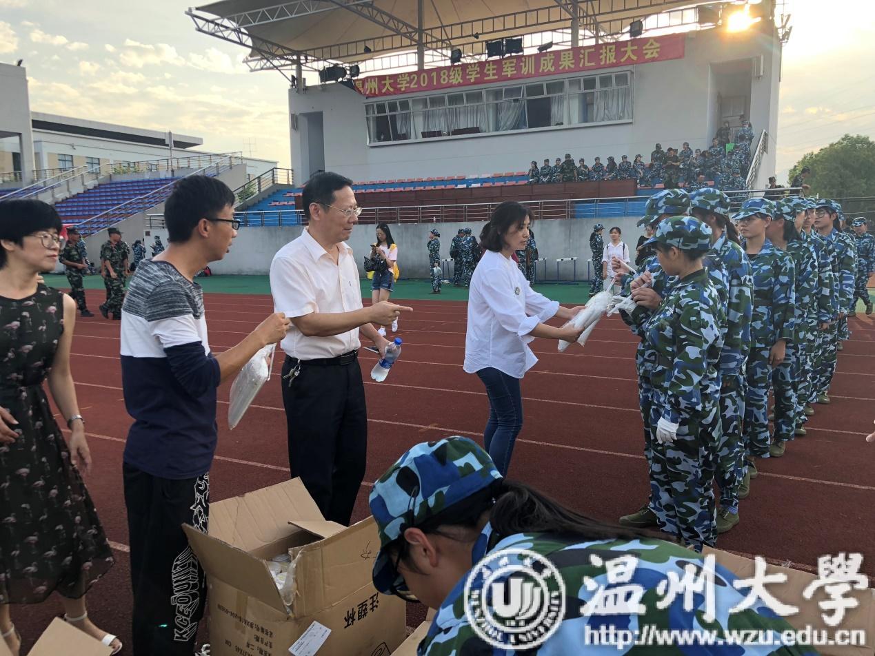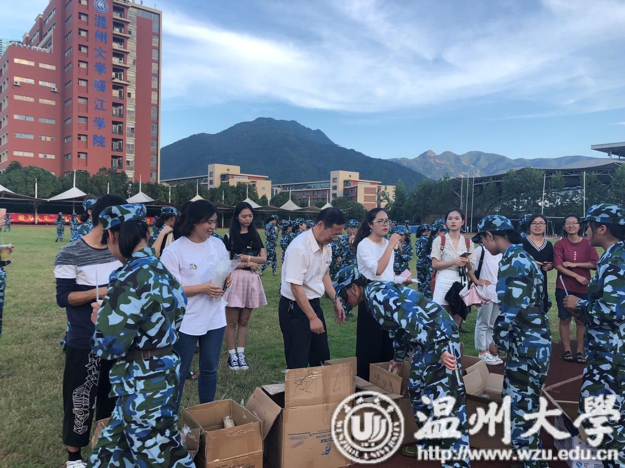 2018年9月20日下午,全讯白菜网官网副院长毛继光携辅导员倪晓晓、江萍老师及新生各班班主任和班助一道,为全讯白菜网官网参与军训的新生送去清凉饮品。在新生军训期间,持续的酷暑磨炼着新生的意志,为确保军训正常进行,缓解新生身体与心理上的压力,毛院长和老师们贴心的送上奶茶。全讯白菜网官网莘莘学子们列着整齐划一的方阵,井然有序地领取各自的饮品。这为挥汗如雨的新生们带去炎炎夏日的凉意,体会到了学院深深的关爱。