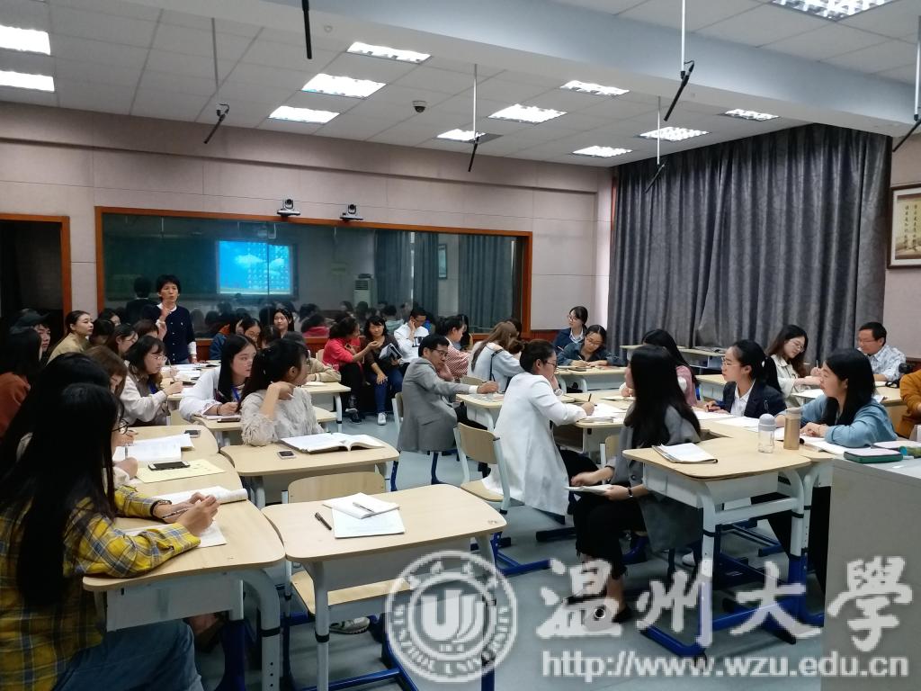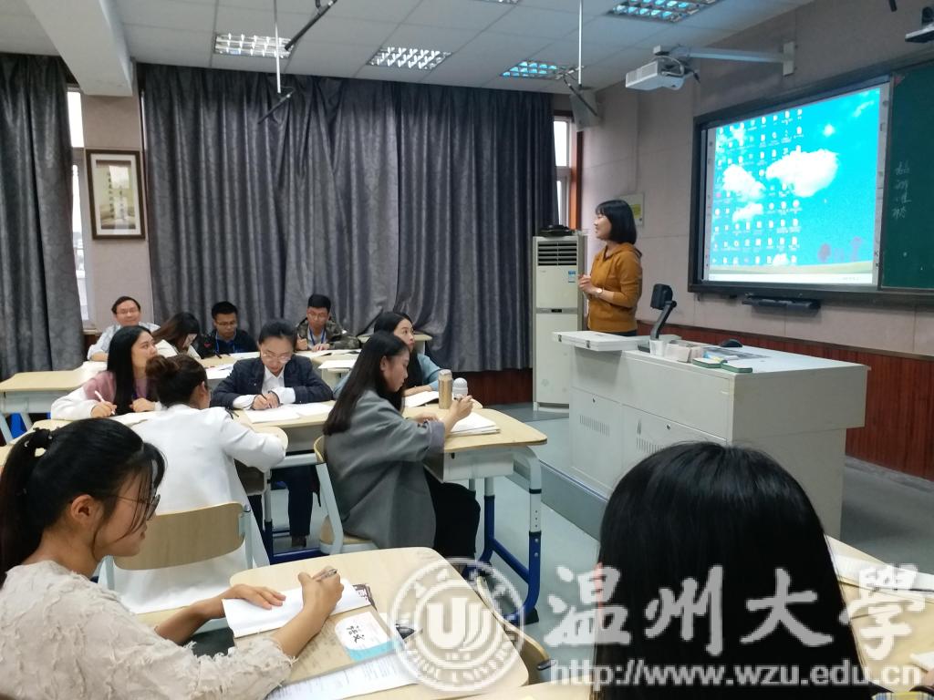 接下来,全体指导老师和实习生开展了集体评课活动。陈佩娴老师首先肯定了郑依伦同学的教学设计、教态以及读写结合的方式,又对课堂提出了自己的建议。她认为,教学设计的逻辑性是我们需要着重考虑的。周小兵老师从学科专业的角度提出了自己的想法。最后,副院长刘建国老师向温州南浦实验中学教育集团惠民路分校表达了感谢,并对同学们的实习进行关心和慰问,又针对现今的语文教学发表了自己的看法。