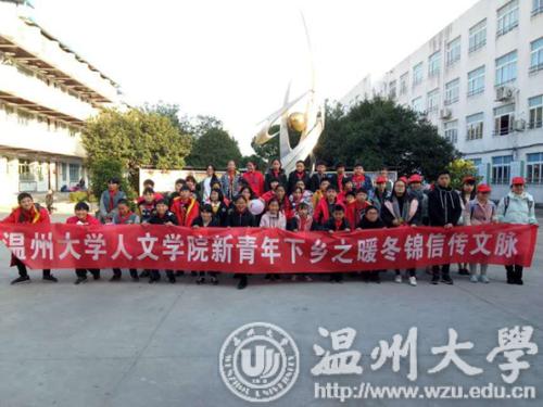 为响应十九大的号召,400全讯白菜网深入农村、深入基层,全面客观认识当代中国,同时增长本领,实现自身价值。2017年12月20日,400全讯白菜网思源青年志愿者协会组织16历史、16广告、15广告三个班级以及部分志愿者们分别于乐清市芙蓉镇、岭底乡、天成街道相继开展“新青年下乡”活动。