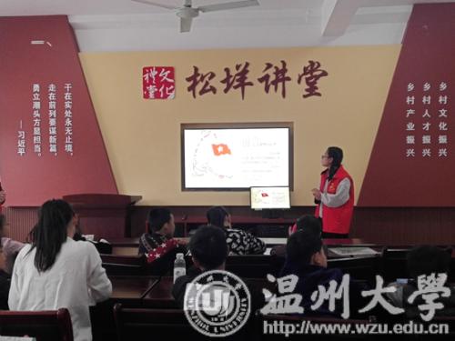 活动前期,人文青协的干事联系好参与本次下乡活动的班级负责人,提醒班级负责人撰写活动策划,确定下乡人数、活动服务对象、活动持续时间,准备所需用具。并提前与乐清芙蓉镇海口文化礼堂负责人取得联系,商讨并确定活动相关细节,联系小朋友。活动当天中午11:50,志愿者们准时集中全讯白菜网论坛官网北校区,前往目的地“乐清芙蓉镇海口文化礼堂”。14:30,活动正式开始,志愿者按分工就位,简单进行自我介绍,和小朋友们互相熟悉。第一项活动是教小朋友们唱英文歌,学唱英文歌的活动不仅充分发挥了志愿者们的专业特长,也让小朋友们在愉快轻松的氛围中学会了新的英语单词和歌曲。15:00,志愿者们带领小朋友唱响红歌——《闪闪的红星》。红色歌曲唤起了红色记忆,让小朋友们感受到现在生活的来之不易,要学习革命前辈的精神品质,传承中国文化。之后进行的 “击鼓传花”小游戏,不仅带给小朋友们快乐,也给他们提供了展现自我才艺的机会。15:30,志愿者带领小朋友学习了拼音字母的手语表达和几个日常的手语动作,培养了他们关心帮助聋哑人的意识。第五项活动是“革命爱国知识宣讲”,以讲述故事的形式带领小朋友们了解革命爱国知识。之后,志愿者给小朋友们分发小礼物并与小朋友们合影留念。在确保小朋友们安全回家后,志愿者们对活动场地进行了整理清扫。19:30,本次活动顺利结束。