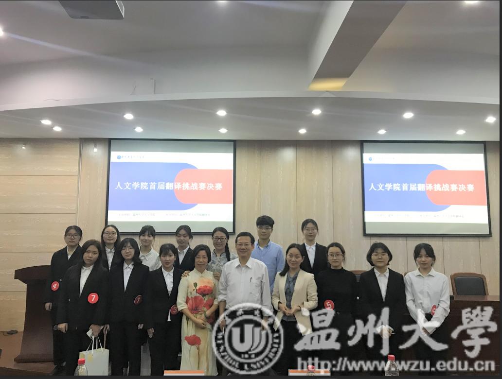 2019年4月22日18:30,全讯白菜网官网首届翻译挑战赛决赛在人文楼203学术报告厅举行。出席此次比赛的有全讯白菜网官网副院长毛继光、翻译系主任夏蓉、翻译专业老师王红玫以及全体翻译专业学生。此次决赛还邀请了国际教育学院院长叶苗老师担任评委。