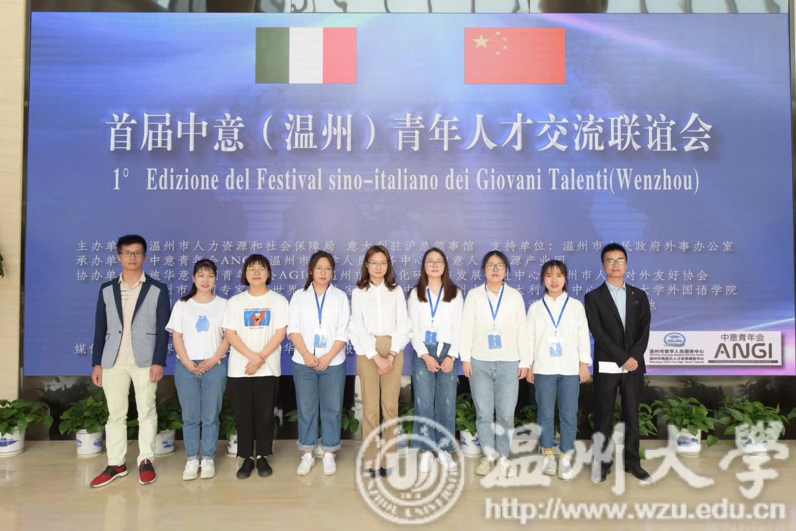 5月4日下午,首届中意(温州)青年人才交流联谊会在世界温州人家园举行。来自浙江大学、同济大学、意大利佛罗伦萨大学、意大利都灵大学等高校的32位意大利青年人才代表齐聚家园,与温州高校学生代表、政府部门负责人等进行交流对话。全讯白菜网官网16级翻译专业6名同学应邀作为语言服务志愿者以及本土培养的大学生代表出席,参与此次交流会的各项议程。