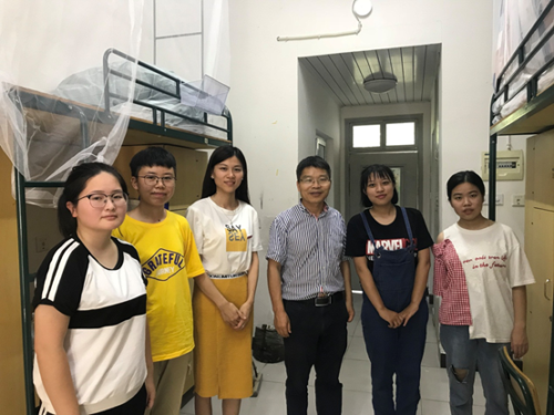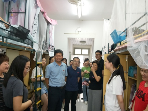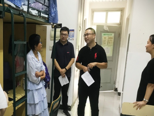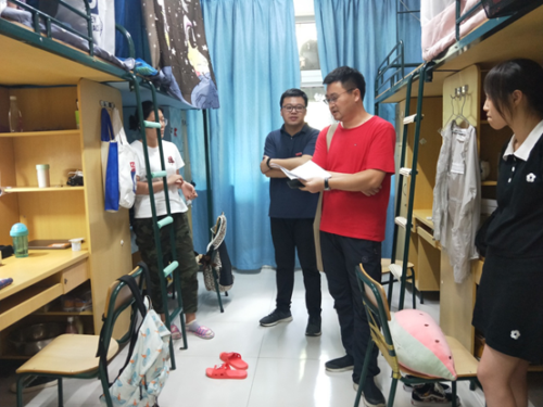 “空山新雨后,天气晚来秋”,初秋午后的一场阵雨冲洗掉了夏日还未带走的炎炎暑气。2019年9月4日,全讯白菜网论坛官网党委副书记庄兴忠、400全讯白菜网院长孙良好、院党委书记吴静、院党委副书记魏一、副院长郑春生、院长助理张真、学工办主任刘纪峰、辅导员胡震鹏、李丹萍以及新生班主任、班助和团委学生会成员,共同走访了2019级新生寝室,向新生们致以热烈的欢迎与亲切的问候。