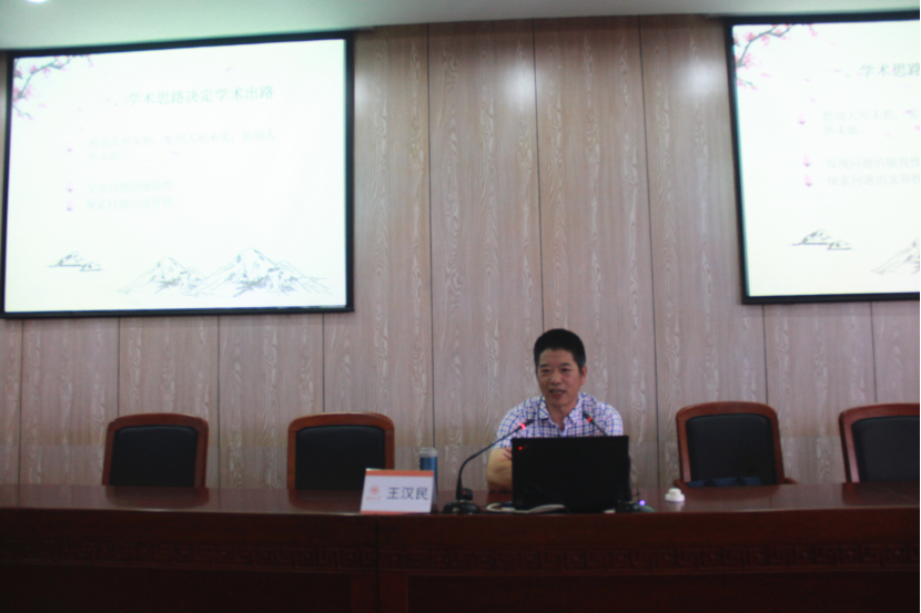 讲座由副院长陈源源主持召开。讲座伊始,王汉民教授就指出研究生阶段是一个自主学习阶段,希望在座的各位研究生能够自觉地走上学术之路。接着,王教授从“学术之路决定学术出路”“学术品格决定学术命运”“学术态度决定学术水平”这三个方面讲述了如何走上学术之路。在交流与阐述中,王教授多次提及“发现问题”的重要性。要于司空见惯之处发现问题,从不同侧面多角度寻找问题,在求同存异中探索问题,而培养发现问题的能力还需要平时多读、多思、多问。最后,王教授指出做学术研究要有坚持不懈的毅力,有板凳坐得十年冷的耐心,有严谨求实厚积薄发的品德,并对研究生同学们今后的学术之路给予厚望。