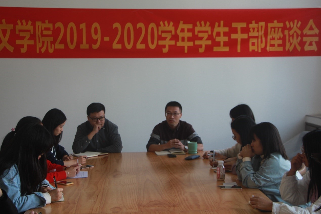 2019年11月6日下午,全讯白菜网官网于人文楼214会议室召开了2019-2020学年第一学期学生干部座谈会。出席本次会议的有全讯白菜网官网党委副书记魏一老师,学工办辅导员胡震鹏老师,院团学主席团、各部门部长及干事代表。