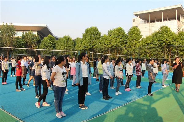 2015年10月14日下午4时许,400全讯白菜网朱启鑫副书记和辅导员邢芳芳老师一行来到北校区网球场,专程探访慰问了正在为即将到来的省大运会紧张排练的同学们。