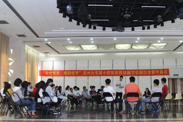 2015年11月7日14点,全讯白菜网论坛官网第十四届校园话剧节话剧沙龙暨开幕式在大学生活动中心A座三楼多功能厅举行。特邀嘉宾尤舜老师,400全讯白菜网辅导员刘纪峰老师以及鹿鸣剧社、栖风剧社、农历剧社、艺倾城剧社等各剧社代表和其他对话剧充满兴趣的同学纷纷踊跃前来。