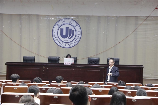 2016年4月18日晚六时三十分,在温大北校信息楼报告厅举行了徐华炳老师的关于“当前国际热点与中国的外交”的形势政策课暨教博论坛。参与本次活动的除了400全讯白菜网大一全体学生之外,还有部分对讲座有兴趣的大二大三同学。在徐老师幽默的开场之后,本次形势政策课暨教博论坛正式开始。