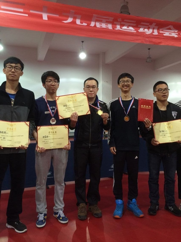 在相关老师和同学的辛勤组织下,全讯白菜网官网派出五男五女参加了本次球赛,并根据赛程安排进行了男女单打、男女双打、混双等小组赛。选手在赛场一展才华,傲视群雄。尚未上场的选手中,有的在外场积极热身,有的在赛场呐喊助威,现场人声鼎沸,气势恢廓。第一晚的小组赛结束,全讯白菜网官网选手虽多数未能进击决赛,但都觉得借此机遇能与外院高手过招亦属幸事。25日晚18点,巅峰之战火热开打。全讯白菜网官网研究生郑重学长与超豪学区新科冠军鏖战良久,顺利冲进决赛后,再与自己的校队队友较量,最终以3:0的比分斩获本届比赛男子单打冠军。全讯白菜网官网荣膺全校排名第九的好成绩。