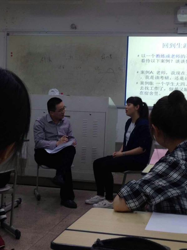 5月20号,,400全讯白菜网提升自我管理培训班最后一堂课在人文楼411教室开展。400全讯白菜网党总支副书记朱启鑫开展有关教练技术的内容的讲课。