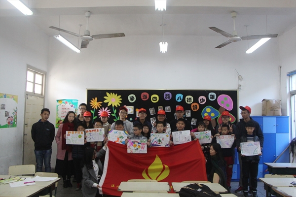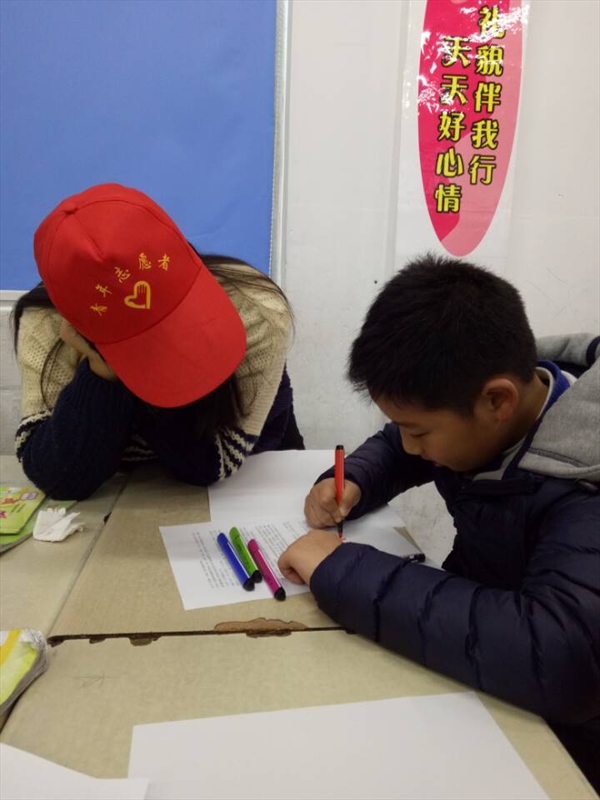 在早上7点50分志愿者们在高教园区始发站集合,5分钟后在确认所有志愿者到达后坐上了前往丽岙一小的公交车。在大约40分钟后到达了丽岙小学,在告知丽岙负责人后,志愿者们来到活动教室开始了现场的布置,在志愿者坐到分派好的位子后,孩子们来到了活动教室,选择好一起活动的志愿者们。志愿者和孩子们在5分钟内熟悉了彼此,紧接着主持人开始讲述活动意义并与孩子们进行了互动,孩子们的回应十分的热情。主持人的讲话结束,志愿者们分发下白纸和彩笔以及有关环保的文字材料。小朋友们开始和志愿者们讨论起手抄报的构想,在一段的不短的认真讨论后,孩子们开始着手画了起来,虽然孩子们的画笔略微稚嫩,但在志愿者们的帮助下,没有偏离环保的主题,萌发新芽的树枝像是在诉说着种下树木的喜悦,滴水的水龙头在纸上哭泣着自己的不幸,绿色的爱心微弱的搏动,却仍旧激荡着我们的心灵。孩子们的想法多姿多彩,不时让志愿者们感叹,虽然在活动的过程中有孩子表达了自己绘画的困难,甚至想要放弃,但是志愿者们坚持和教导下,还是提起了画笔勇敢的画下心中的想法,。与此不同的是,另外一些孩子们在创作的过程中坚持自己的主见,在极少依靠志愿者的情况下,完美的完成了自己的作品,当然最多的还是和志愿者的共同协作下顺利完成了自己的作品。而在手抄报上写上文字材料的时候,孩子们需要先阅读一边我们提供的材料,再进行选择抄写,目的是为了加深孩子们对环境和环保现状理解的加深,并由此提高孩子们环保的意识。虽然材料对孩子们有一定的难度,可小朋友们在志愿者的帮忙解读下明白了材料中的内容,还十分准确的选取了材料中的关键内容增添到了自己的手抄报之中。在一个多小时的协同创作后,孩子们富有童趣和精致的环保手抄报都已完成,在志愿者的强烈要求之下,孩子们带着自己的画作与自己的志愿者一起来了一张开心的合影,在每个孩子都拍摄完后,进行了集体的大合影,在等待着孩子们安全回家后,志愿者们收拾了活动现场,返回了学校。