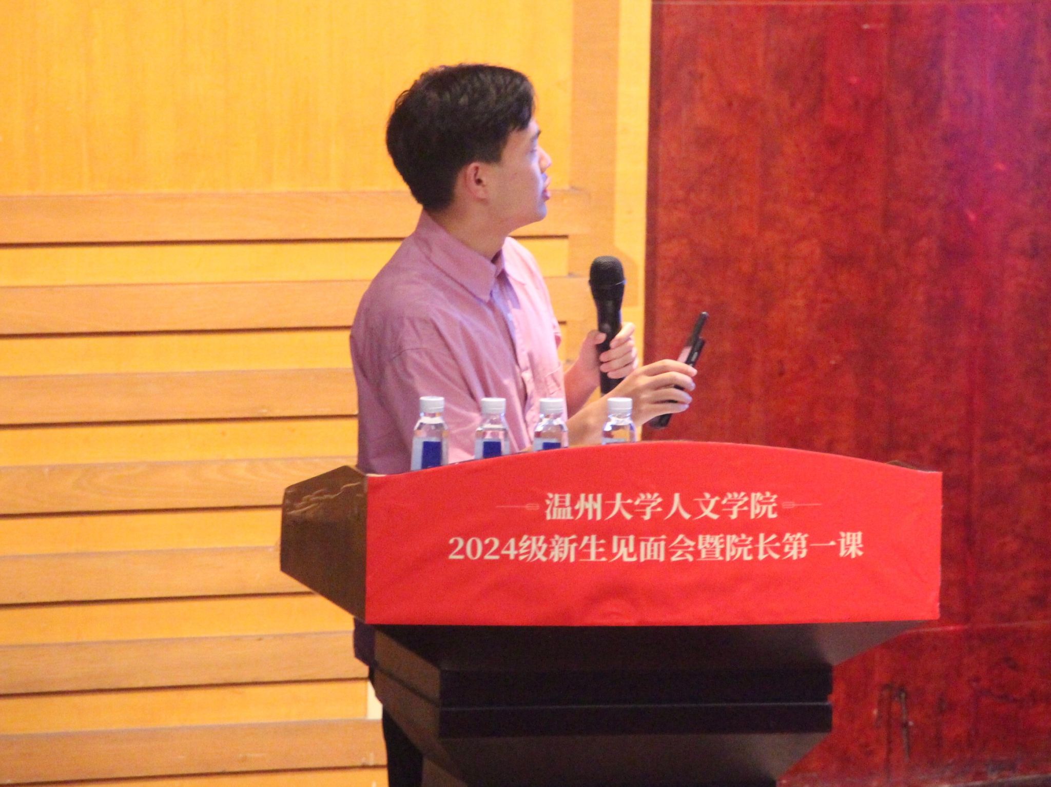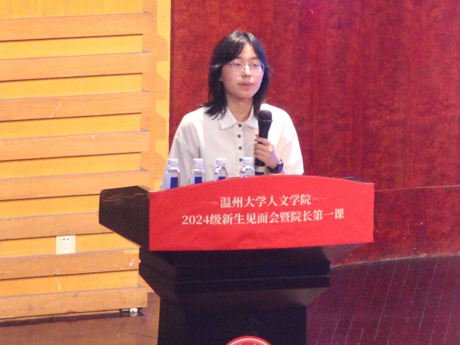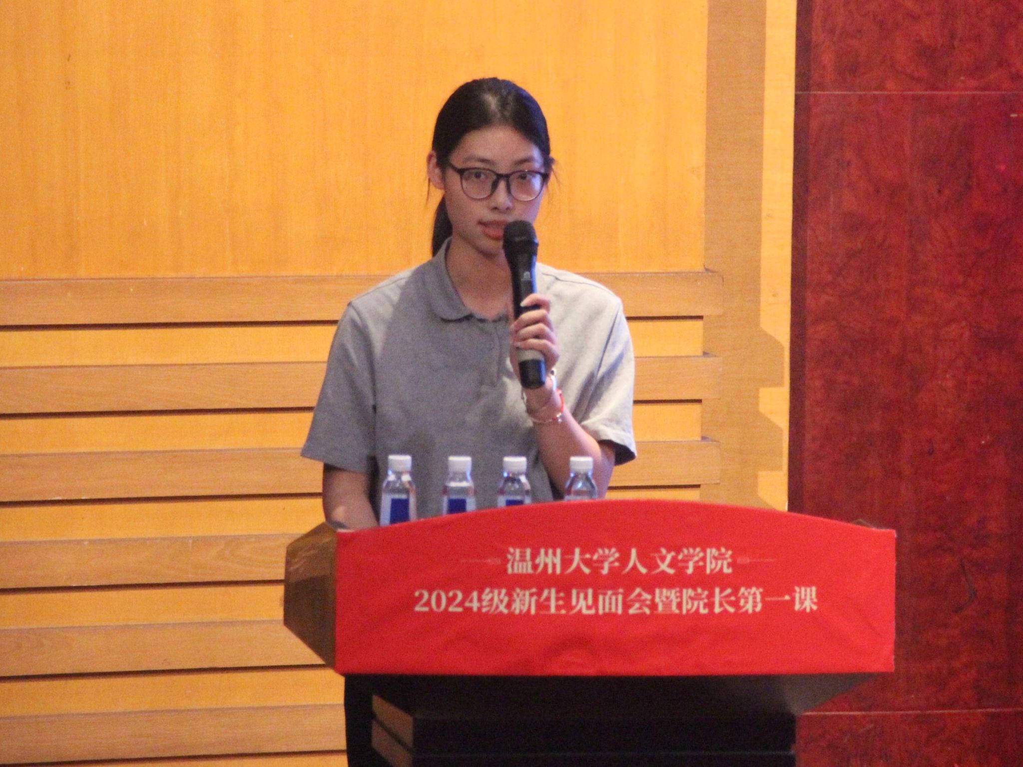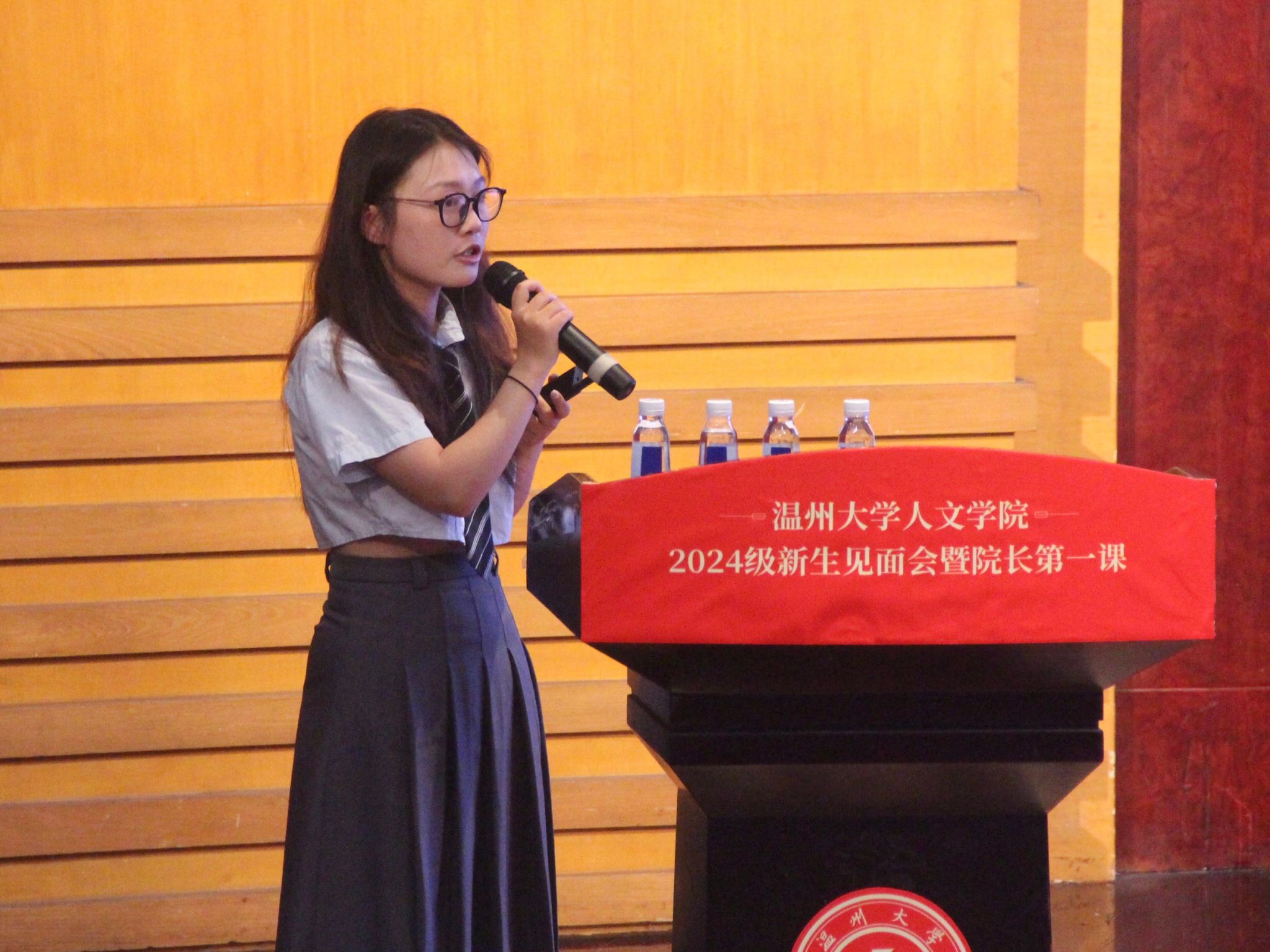 随后,班助代表董书娴带来了经验分享。她以一个温大“过来人”的身份向新生们系统又全面地介绍了各类证书、竞赛,建议新生们要尽早对学业以及各类活动进行合理规划。她介绍了温大各个学区的内部分布以及寝室事务细则,希望新生们在学业之余也要安排好寝室内务,享受大学生活。新生们在学姐的描绘下对温大的学习与生活概况有了相应的了解,对于即将启程的温大生活充满了期待。