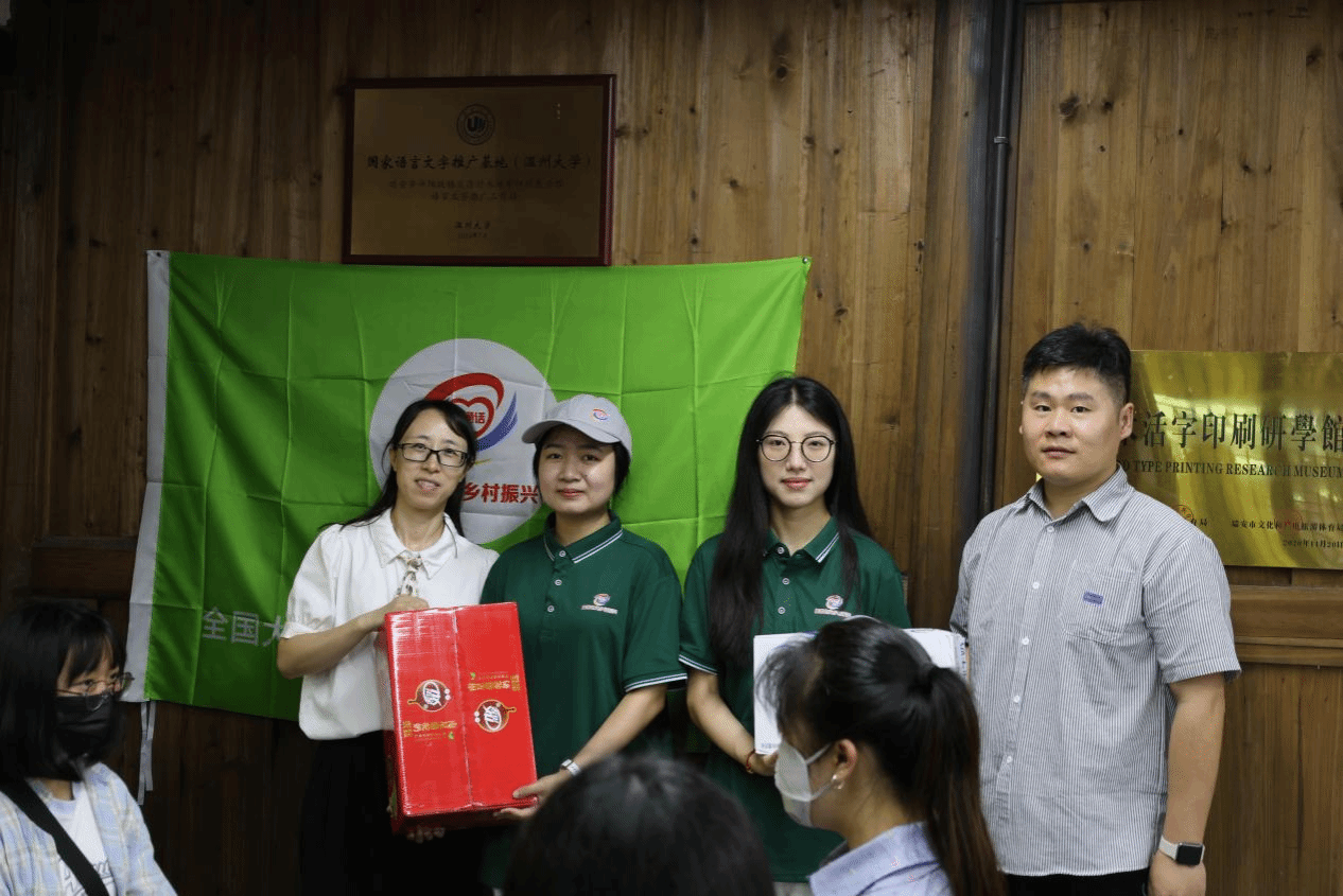 在400全讯白菜网副院长陈源源教授的带领下,夏雨禾教授、学生科刘炳林科长、李惠超博士等一行人来到瑞安平阳坑镇东源村东源木活字展示馆,为实践队队员们送上慰问品。这份关怀让实践队队员们倍感温暖,深受鼓舞,进一步激发了大家投身实践的热情。