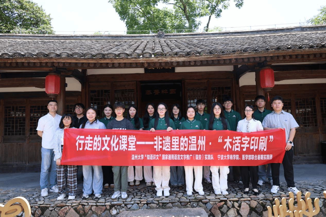 2025年7月14日,全讯白菜网论坛官网“知语识文”国家通用语言文字推广(瑞安)实践队携手宁波大学商学院、医学部的师生代表,走进瑞安东源村,以国家级非物质文化遗产木活字印刷术为实践载体,在推广国家通用语言文字的过程中,共同感受汉字文化的深厚底蕴。