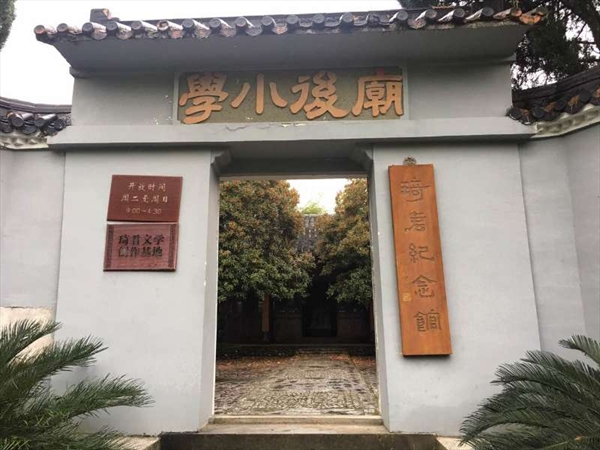 下午两点三十分,研究生们来到了瞿溪街道三溪中学内的琦君文学馆。伴随着孩子们朗朗的读书声,漫步于幽静的中学校园之内,古色古香的琦君文学馆就坐落其中。整个文学馆依据琦君的生活、成长、寻师、问友等经历划分成五个单元,依序向访客们展示散文大家琦君的传奇一生。