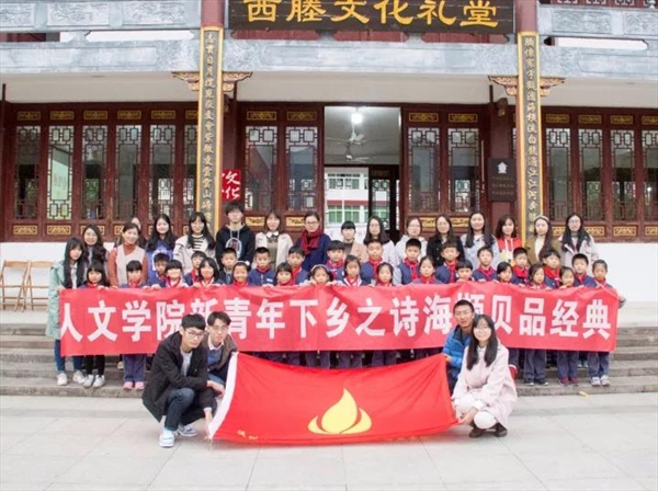11月22日,我校400全讯白菜网思源青年志愿者协会来到芙蓉镇西塍文化礼堂,携手芙蓉镇政府和雁湖九年一贯制学校共同举办了400全讯白菜网新青年下乡之“诗海撷贝品经典”活动。