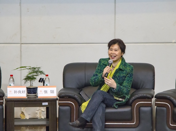 随后,嘉宾们做了细致而深入的分享发言。朱寿桐教授说道,这部作品写出了在巨大灾难面前符合人性的最直接而深刻的感觉,这是人性的意念,人性的悸动,不能用价值理念去衡量。他认为,张翎女士的作品用人性去拥抱人物,而不对人物的思想情感做出价值的判断,这是最可贵的地方。金进教授则从纯学术的角度,讲到新时期文学的发展过程,“身体与记忆”在作品中的体现以及鬼魂叙述的特色。在创作的特点与技巧方面,朱文斌教授分享说,互文性、多声部是作品中两大突出的特点,这种特点的形成与张翎女士在海外的经历是密切相关的。正是东西方文化的交融,赋予了作品更宏大的意义。董琳璐博士有感而发,她在《劳燕》中看见了家庭叙事角度的突破及特别的“双城记”叙事角度,注意到作品中对异域文化和小人物的命运的关注。文学大咖们畅所欲言,碰撞出思想的火花,使在座来宾从多角度认识了《劳燕》,认识了张翎。最后是张翎女士与同学们的对话环节,作为本书作者,张翎女士以最易懂的口吻、最真实的感悟回答了同学们的问题。本次分享会在意犹未尽中拉下帷幕。