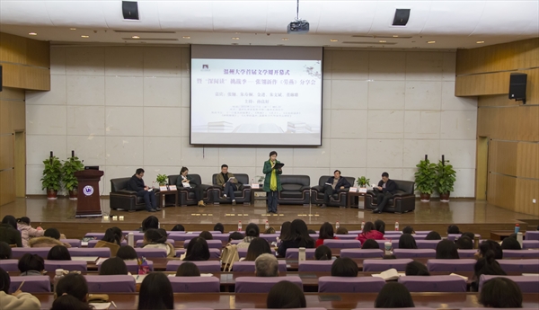 2017年12月11日18:30,我校首届文学周开幕式暨“深阅读”挑战季张翎新作《劳燕》分享会在育英图书馆学术报告厅如期举行。