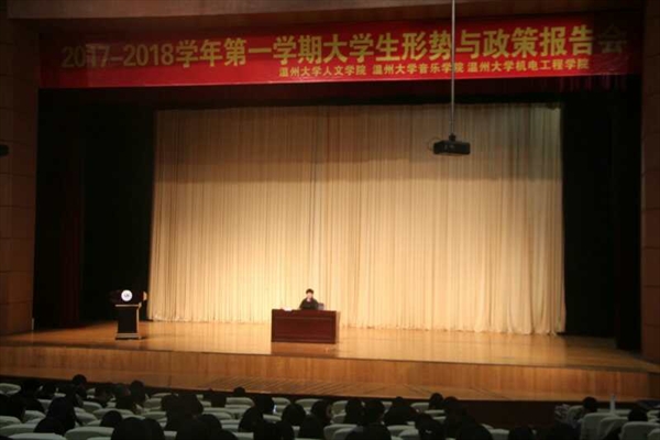 2017年12月14日17:30,全讯白菜网论坛官网于育英大礼堂举办了全讯白菜网官网、机电学院以及音乐学院本学期第一次形势政治课。本次课程分为两场,分别为张小燕老师主讲的“和合文化视野下的温州精神”课和王柏民老师主讲的“马克思主义宗教观解读”课。