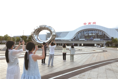9月7日上午,“坐着杭温高铁去温州吹风”——大学生旅拍大赛于高铁楠溪江站开启线下启动仪式。启动仪式现场,永嘉昆剧团以永昆青春版《牡丹亭》及《大闹天宫》快闪迎接同学们的到来。简短的快闪之后,来自杭州、温州两地的10余所高校近200名学生,分四组,乘坐大巴奔赴永嘉楠溪江,苍南168黄金海岸、矾山、玉苍山,泰顺南浦溪、三魁,平阳万全等地,开启两天一夜的极限48小时温州旅游精品线路线下旅拍活动。