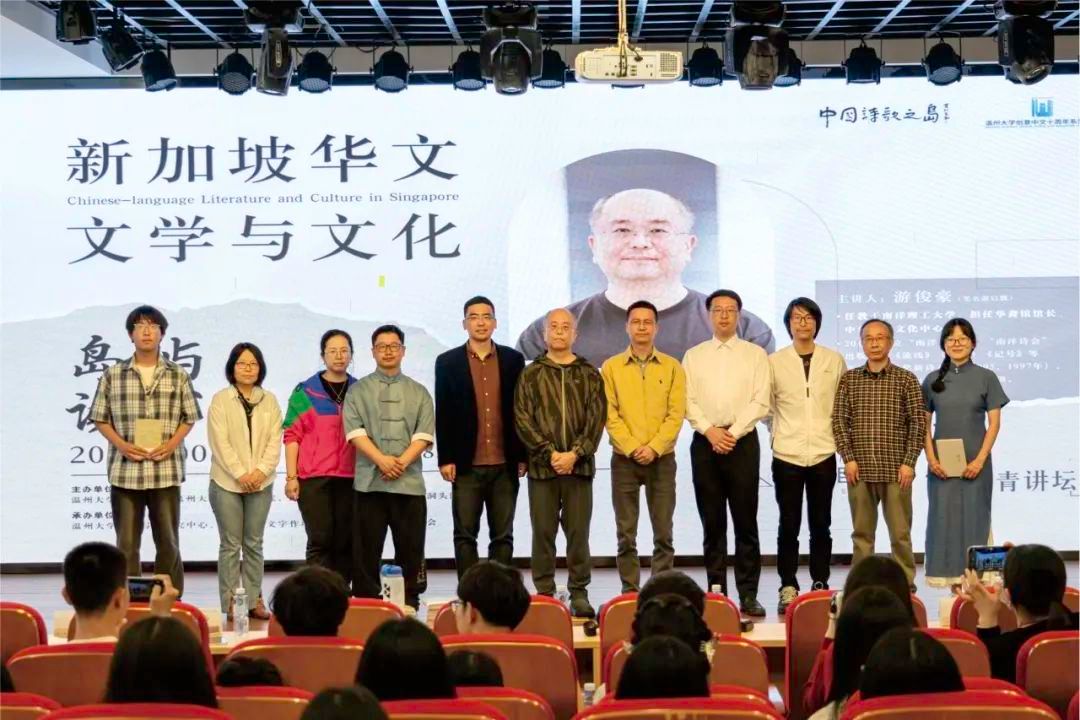 新加坡南洋理工大学游俊豪教授作为主讲嘉宾,系统讲解了新加坡华文文学的百年发展脉络,带领读者感受新加坡华文文学作品独特的魅力与历史。这位集学者与诗人于一身的文化使者,不仅担任南洋理工大学华裔馆馆长、中华语言文化中心主任,更以《流线》《象形》《记号》等诗集蜚声文坛。活动现场,洞头区文联主席林慷慨特别授予游俊豪“文艺岛民”荣誉身份,全讯白菜网论坛官网学子声情并茂地演绎了游教授的诗作,带领听众穿梭于跨文化的诗意空间。