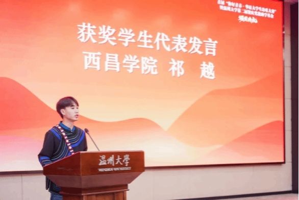 来自四川西昌学院的彝族大学生祁越代表获奖作者发言。他说:“我生长在一个名为乌托尔库的地方,那里基本上都是彝族同胞。我的写作立足于四川大凉山,对彝族传统文化、习俗、谚语、神话、毕摩文化等进行文学铜矿再冶炼、再创造。通过写作,让那些已经不在人间的人能够永远地活着……在文学记忆中永远地活下去。