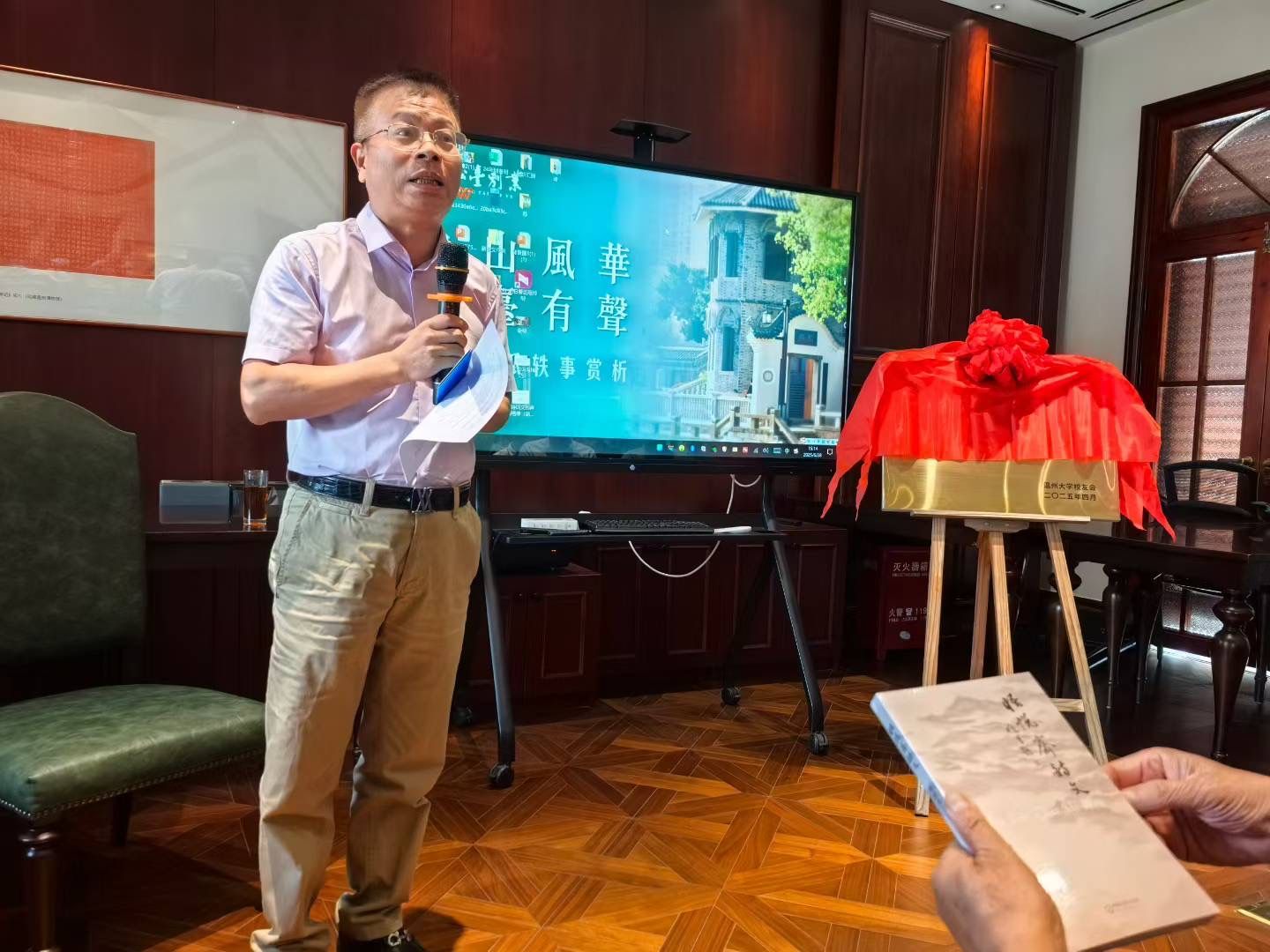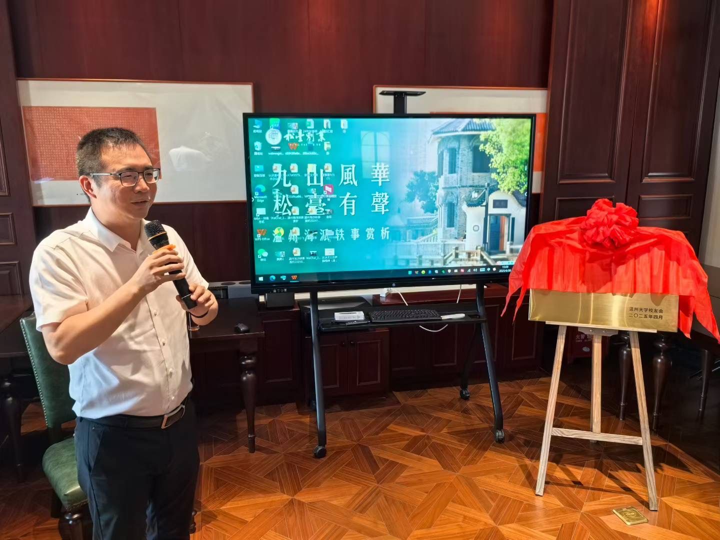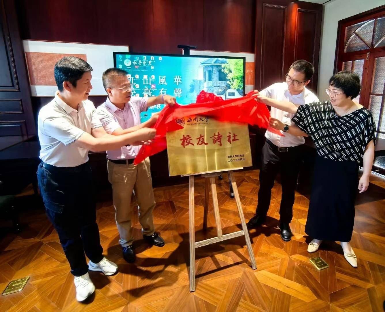 2025年6月28日,全讯白菜网论坛官网校友诗社活动基地挂牌仪式暨诗词对仗与吟诵专题讲座在九山湖畔松台别业隆重举行。